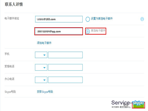 点击"添加电子邮件",在新弹出的框中输入新的注册邮箱,并选择设为"首选电子邮件",然后点击"保存",如图示: