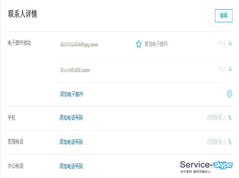 登入帐户后,点"编辑个人资料",进入个人档案页面,点击此页面下方"联系人详情"右边的"编辑",如图示: