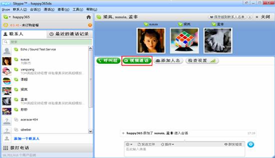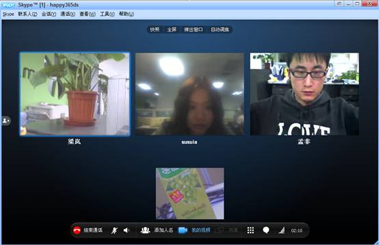 3)手机版Skype用户及非Skype 5.0以上版本用户不支持多人视频功能,加入多人视频通话后只能使用语音通话功能。
