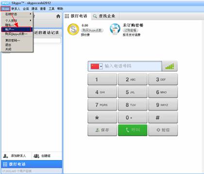 第一步:登录Skype客户端,点击“Skype->帐户”菜单(如图5)。