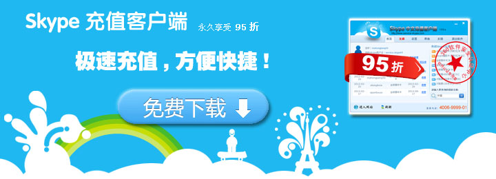 中国skype充值服务中心,7×24小时提供skype点数,skype国际卡,skype包月卡,skype世界通全球通,skype号码,skype套餐等skype充值卡。skype充值客服4006999901。支付宝,网银支付,网银转账,柜台汇款,ATM转账,手机充值卡,货到付款等多种人民币付款方式,系统24小时自动充值操作,15分钟充值到账。如充值过程在遇到问题,请点击网页右边在线客服图标,与我们及时沟通。