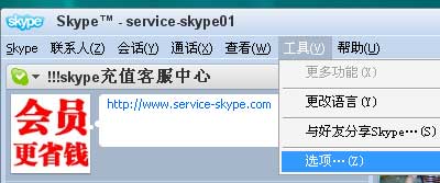 - 打开skype软件界面,点击菜单“工具”→“选项”