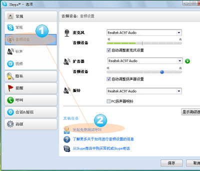 音频设备通常分为两个部份,即喇吧和麦克风。喇吧用于发出声音,就是我们自己听到的声音;麦克风的功能是把我们说的话转成数字信号传送到别人,别人才能听到你的声音。通常你能听到别人讲话,别人听不到你的声音,大部份原因出在麦克风上。当你听不到别人的讲话时,则有可能是喇吧的开关没有打开,或者音量调得太小。当有这些问题时,我们可以通过skype自带的检测工具来测试,找出问题的所在。