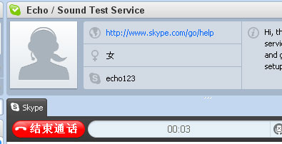 - 在skype软件中会呼叫“echo123”号码,然后您按语音提示操作,如果能听到自己的留言,就表示音频设备没有问题。