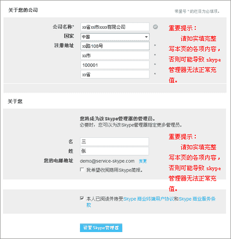 免费使用skype管理器,需要先将普通的skype账号注册管理器,并且此skype账号不能加入到任何skype商业群组。建议重新按公司名称注册一个新的skype账号。
